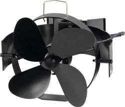Ventilátor Strend Pro, krbový, s úchytom na dymovod a magnetom, poháňaný teplom, 4-lopatkový, čierny