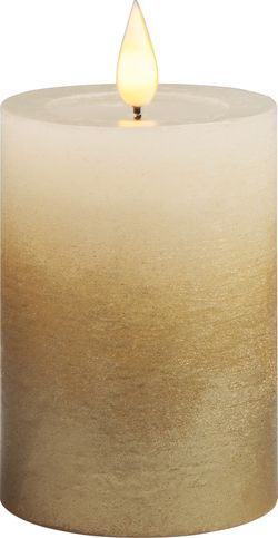 Sviečka MagicHome Vianoce, LED, 2xAAA, jednoduché svietenie, krémová/zlatá, metalický efekt, 7x10 cm