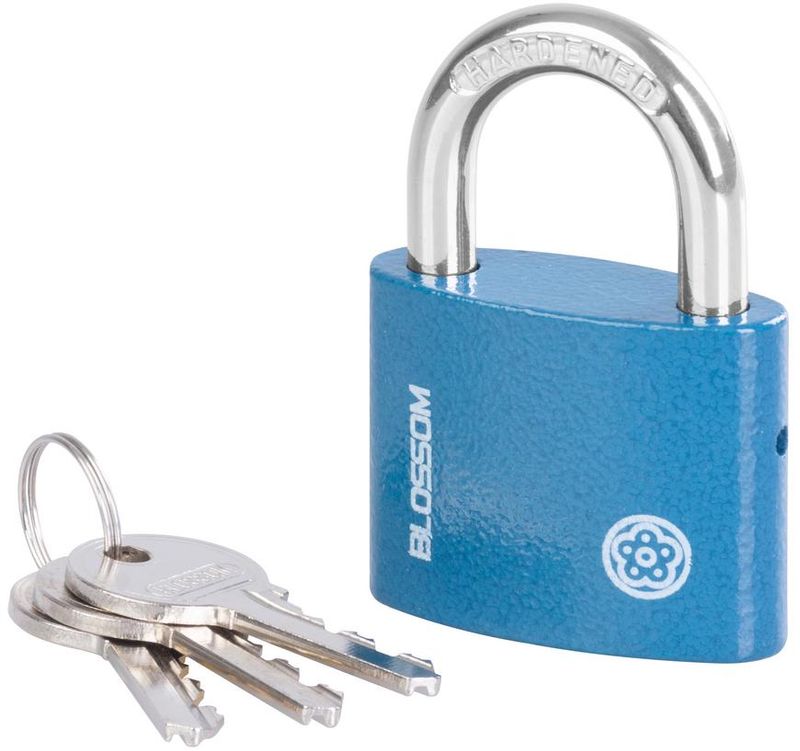 Zámok Blossom je určený na uzamykanie brán, dverí a skríň. Je to visiaci zámok so šírkou 50 mm. Súčasťou sú aj 3 náhradné kľúče.