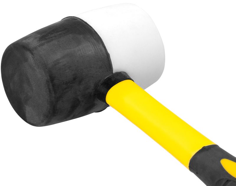Gumené kladivo Strend Pro so sklolaminátovou rúčkou tlmiacou nárazy vhodné na univerzálne použitie. Kladivo je ideálne na pribíjanie alebo upravenie citlivých materiálov bez toho, aby sa poškodili..Zatĺkacia hlava čierno-bielej farby je vyrobená z gumy.