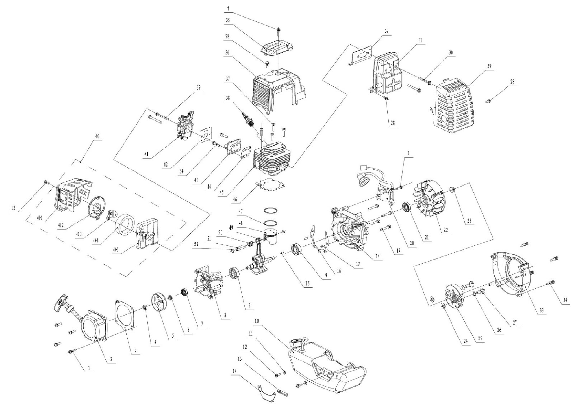 Vo voľnobehu motor beží rýchlosťou 10 500 otáčok za minútu. Kosí so záberom 42 cm, nožom, ktorý je dlhý 26 cm, žiadna burina mu tak neunikne. Krovinorez si vyžaduje zmiešané palivo, ktoré sa mieša z oleja a benzínu v pomere 1:40. Je vybavený palivovou nádržou, do ktorej sa zmestí 1,1 l paliva.