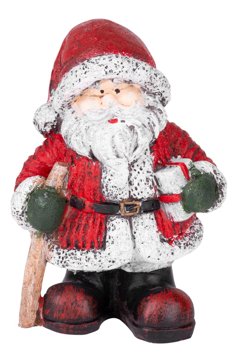 Postavička MagicHome Vianoce, Santa držiaci darčeky s palicou, polyresin, 15 cm