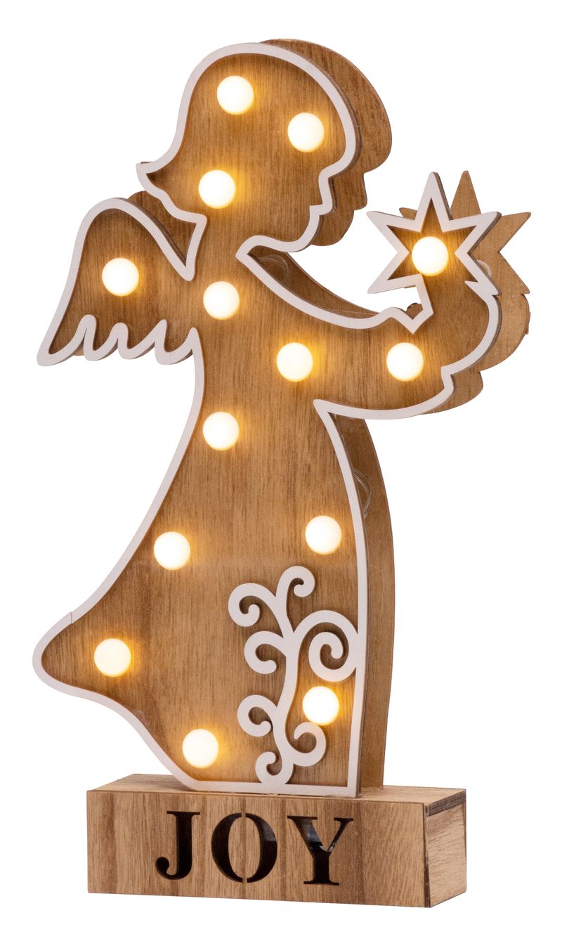 Dekorácia MagicHome Vianoce Woodeco, Anjel, 14 LED, 19x33 cm