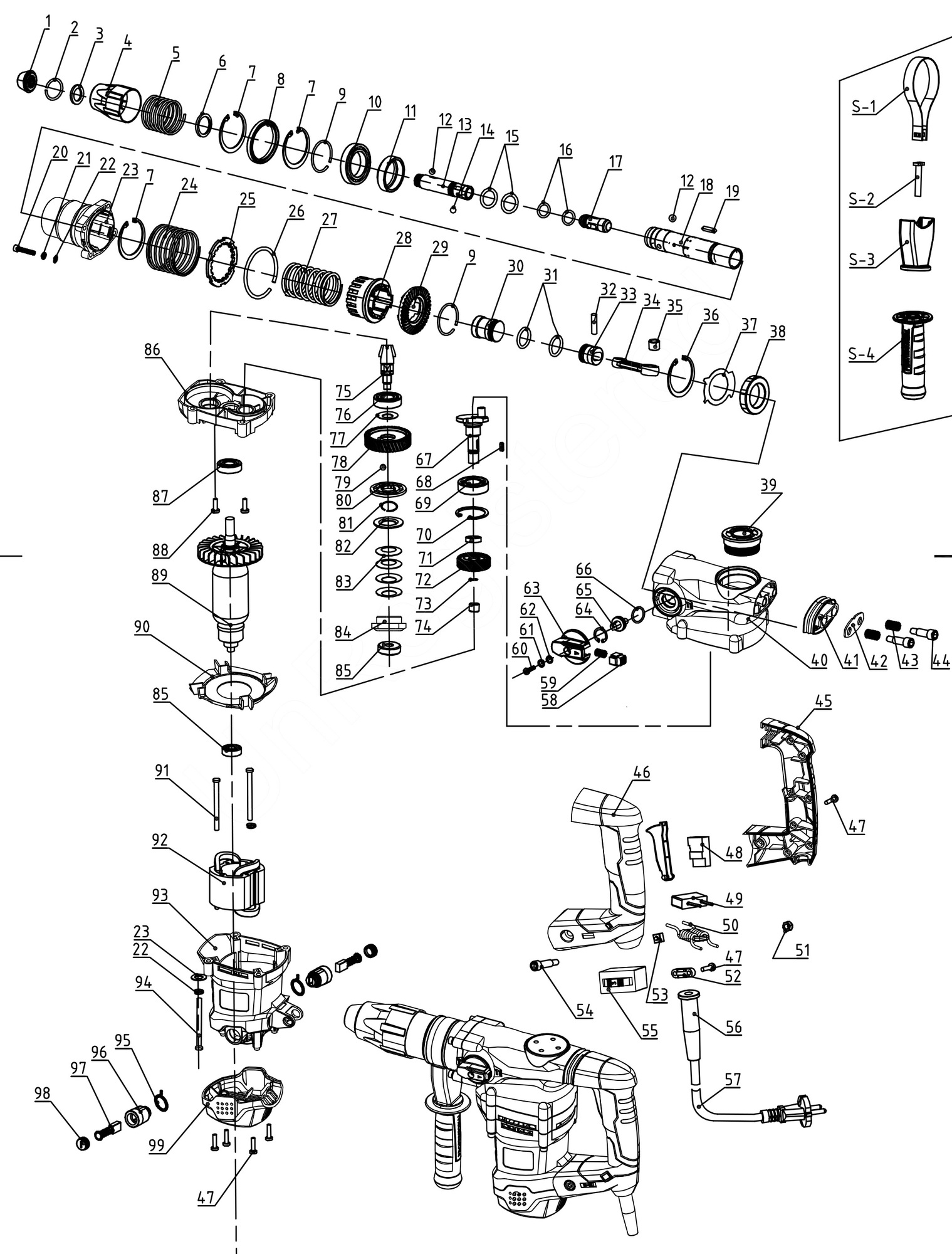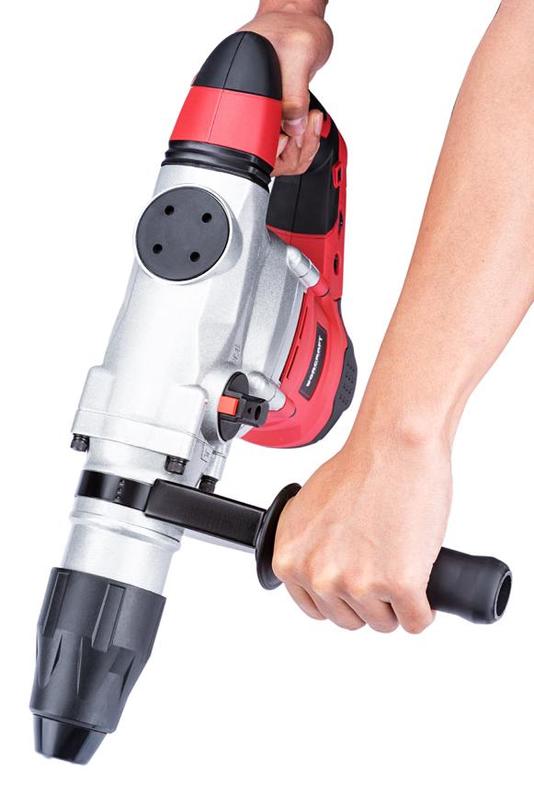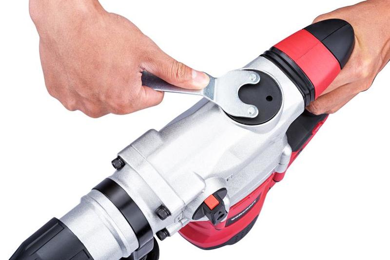 K dispozícii je jednoduché ON/OFF tlačidlo a ukazovateľ napájania, ktoré vám uľahčia manipuláciu s demolačným kladivom. Nechýba prídavná rukoväť a tlačidlo pre nastavenie rýchlostí. Maximálna rýchlosť bez záťaže dosahuje 560 min-1.