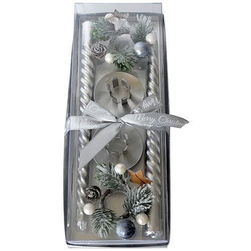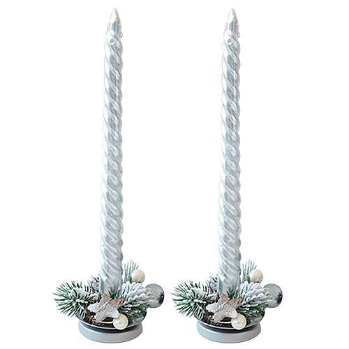 Sviečka MagicHome Vianoce, výška 28 cm, 2 ks, strieborné, podstavec