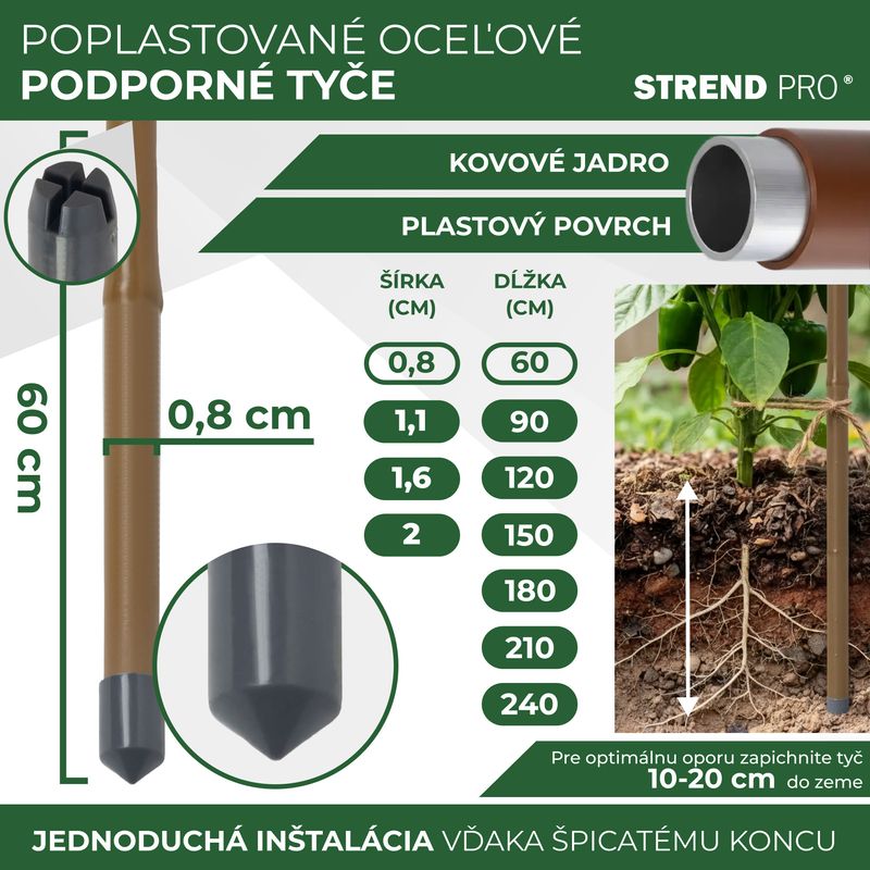 Hnedá poplastovaná oceľová oporná tyč dĺžky 600 mm s priemerom 8 mm je vhodným doplnkom pre pestovateľov paradajok, ktorý chcú ochrániť ich plodi... celý popis