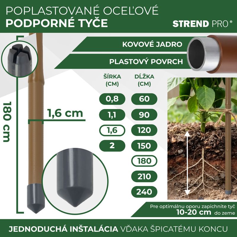 Hnedá poplastovaná oceľová oporná tyč dĺžky 1 800 mm s priemerom 16 mm je vhodným doplnkom pre pestovateľov paradajok, ktorý chcú ochrániť ich pl... celý popis