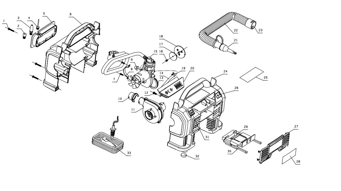 Akumulátor umožňuje odsatie vzduchu z nízkotlakových predmetov ako sú lopty a nafukovačky. Nie je však určený na nafukovanie pneumatík s príliš veľkým objemom (napr. pneumatiky pre nákladné vozidla alebo traktory). Kompresor je vybavený LED osvetlením aj digitálnym tlakomerom, ktorý sa vypne automaticky, pri dosiahnutí požadovaného tlaku.