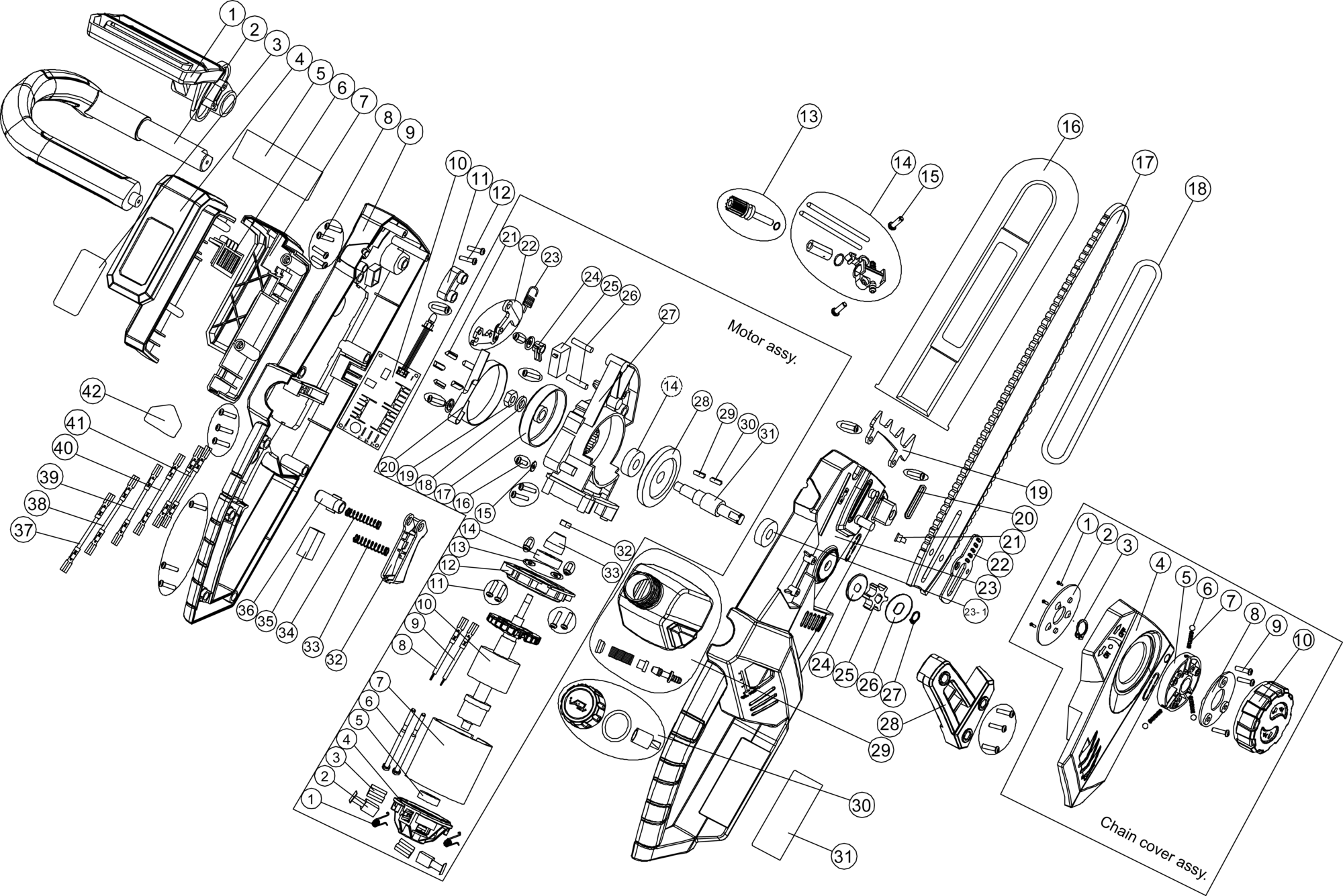 Otáčky reťaze dosahujú 8,5 m/s a o jej upevnenie sa postará rýchloupínací systém na bočnej strane píly. Údržbu uľahčí doplnková funkcia automatické mazanie reťaze a pridaný chránič zabezpečí bezpečnosť pri práci. Lišta je dlhá 35 cm, ideálna veľkosť pre rezanie dreva a zároveň neobmedzuje pri používaní. Reťazová brzda s uzamykacím tlačidlom pre ON/OFF prepínač zvyšujú bezpečnosť. Bez záťaže píla dosahuje 4500 otáčok za minútu. Olejová nádrž píly má objem 170 ml a ako bonus ponúka ukazovateľ stavu náplne oleja. Akumulátor a nabíjačka nie sú súcastou balenia!