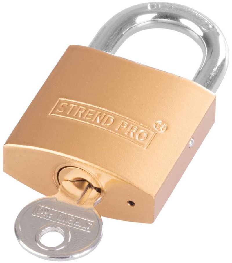 Zámok Strend Pro je určený na uzamykanie brán, dverí a skríň. Je to visiaci zámok so šírkou 38 mm. Súčasťou sú aj 3 náhradné kľúče.