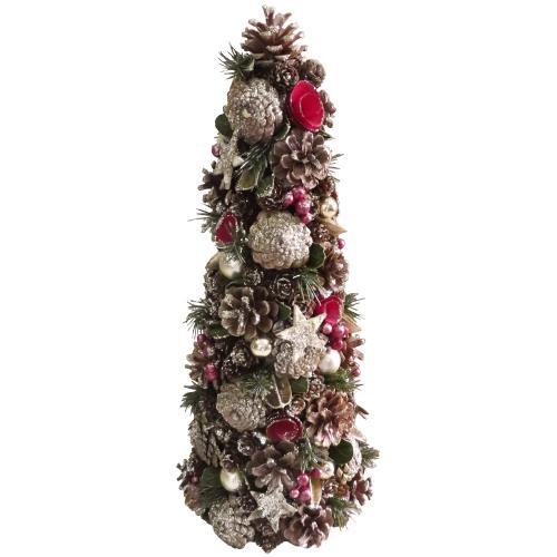 Dekorácia MagicHome Vianoce, stromček, červený, prírodný, ozdobený, 50 cm