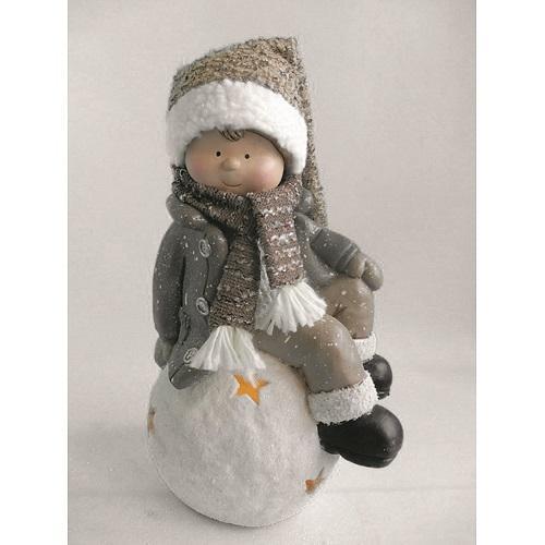 Postavička MagicHome Vianoce, Chlapček na snehovej guli LED, magnesia