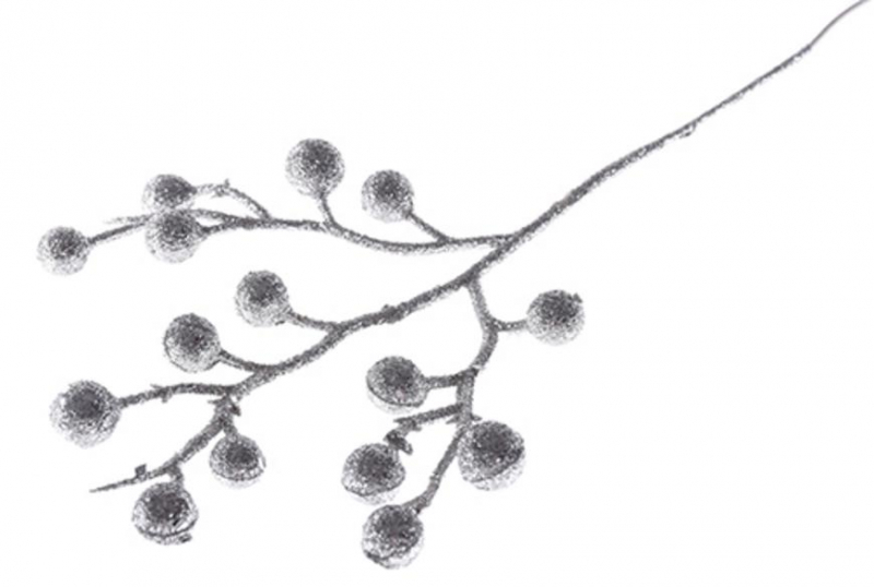 X Vetvička MagicHome Vianoce, GliBerries. strieborná, 28 cm