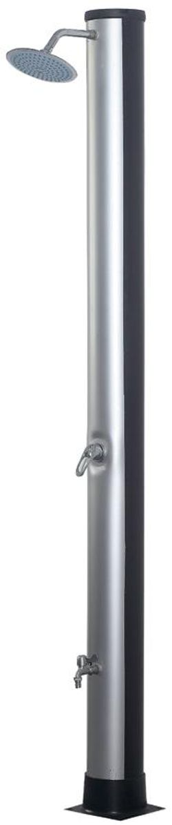 Záhradná solárna sprcha je konštruovaná ako jednodielne teleso, ktorého PP plášť slúži ako zásobník teplej vody a zároveň funguje ako slnečný kolektor. Prívodné vodovodné armatúry sú uložené vo vnútri telesa. Ovládacia páka, sprchová hlavica a držiak sprchovej hlavice, sú umiestnené mimo sprchovacieho telesa. V spodnej časti sa nachádza základňa, ktorá slúži na upevnenie sprchy. V zadnej spodnej časti je umiestnená napúšťacia armatúra. Normálnym javom je, že po uzavretí pákovej batérie zo sprchovacej hlavice ešte niekoľko sekúnd vyteká voda.