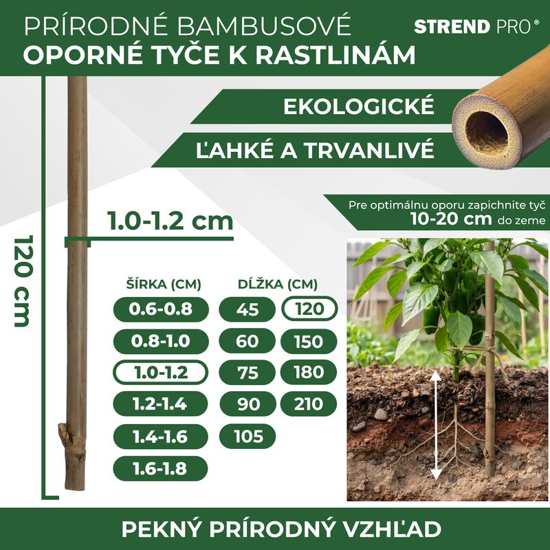 Bambusová oporná tyč dĺžky 1 200 mm s priemerom 10/12 mm je vhodným doplnkom pre pestovateľov, ktorý chcú ochrániť ich plodiny pred zlomením. Ras... celý popis