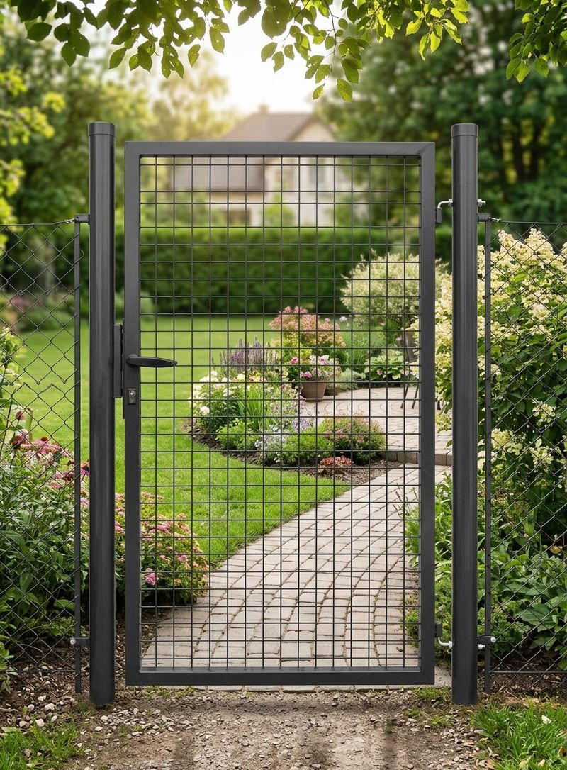 Záhradná jednokrídlová brána s výplňou zváranej siete s okami vo veľkosti 50 x 50 mm a hrúbkou drôtu 4 mm. Úprava je zinok + PVC. Farba antracit. Výška produktu = výška bránky od terénu po vrch krídla.