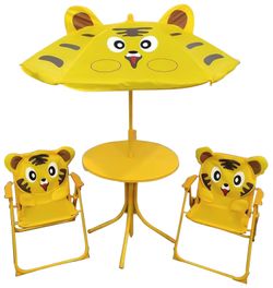 Detský záhradný set Rana je vhodný na záhradu, terasu či kempovanie. Pozostáva z 2 stoličiek a 1 stola so slnečníkom. Záhradný set je vyrobený z kovu a textílie a je ľahko zložiteľný. Určené do 30 kg dieťaťa. Farba : zelená s motívom žabky. Doprajte svojim deťom krásne sedenie v prírode.