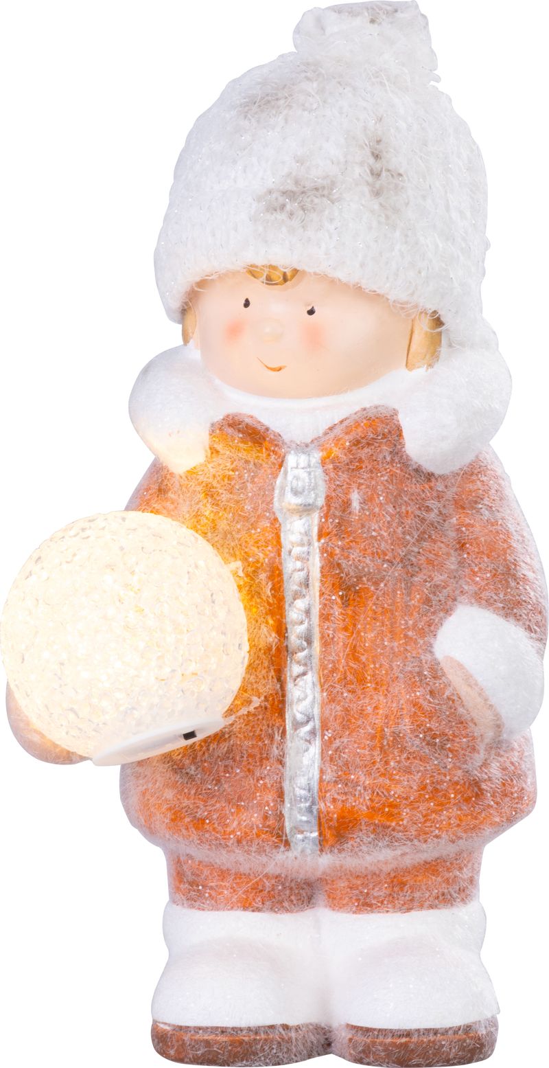Postavička MagicHome Vianoce, Chlapček so snehovou guľou, 1 LED, 14x13x25 cm
