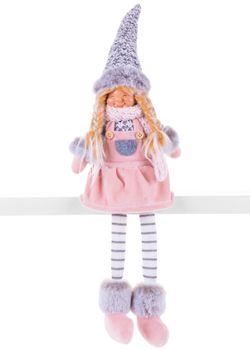 Postavička MagicHome Vianoce, Dievčatko s hustou sukňou, látkové, modro-sivé, 14x11x62 cm