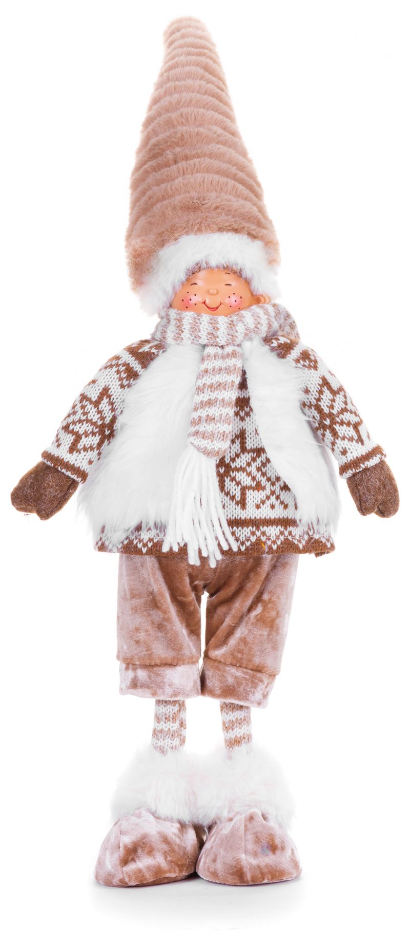 Postavička MagicHome Vianoce, Chlapček, látkový, hnedo-biely, 22x12x53 cm