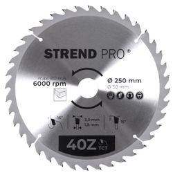 Pílový kotúč Strend Pro je vhodný pre domácich kutilov, ale aj pre profesionálnych remeselníkov. Tento kvalitný kotúč s SK plátkami zabezpečí čisté rezy a to pri pozdĺžnom alebo priečnom rezaní dreva, drevotriesky, masívnych a drevovláknitých dosiek. Jeho priemer je 160 mm a maximálne povolené otáčky sú 7 500 rpm.