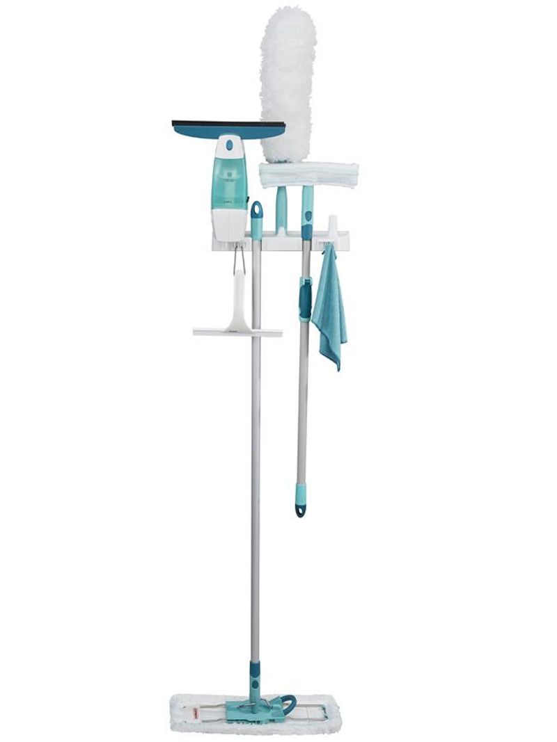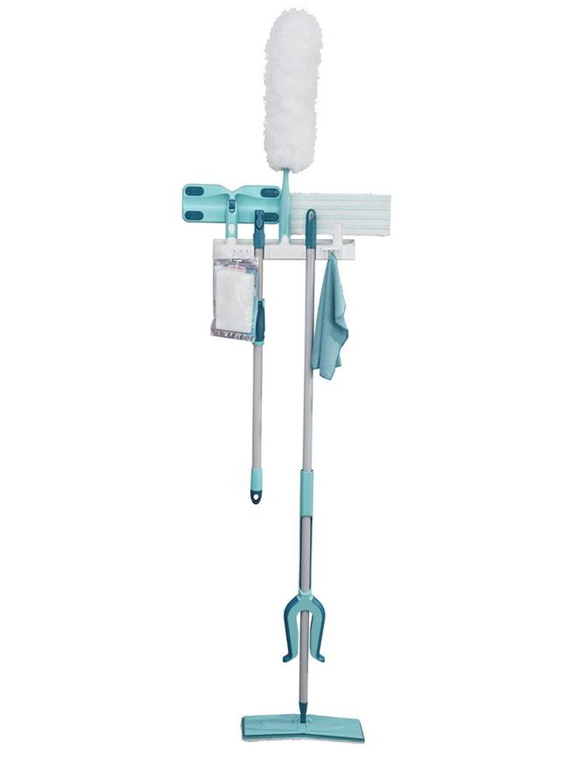Organizér na jednoduché a prehľadné skladovanie jednotlivých súčastí ku Click Systému na jednom mieste. Využitie a súčasti organizéra sú: • 2 úchyty na tyče • 3 samostatné nástavce • Možnosť zavesenia návlekov na mop doprostred držiaka (so spôsobom uchytenia na systéme vreciek) • 3 háčiky na zavesenie handričiek alebo produktov so závesným očkom • Easy Clip držiak až na 3 ďalšie handričky, návleky na mop / náhrady na mop• Možnosť nasadenia náhrady na mop na nástavce• Vrátane inštalačného setu na stenu (2 hmoždinky a skrutky).