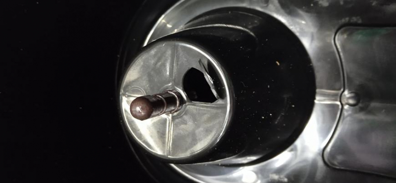 POPIS ZÁVADY: Diera v priestore pre rotačný košík. Táto vada nemá vplyv na funkčnosť výrobku (vedro nie je potrebné naplnit vodou až na takú úroveň, kde sa nachádza diera).