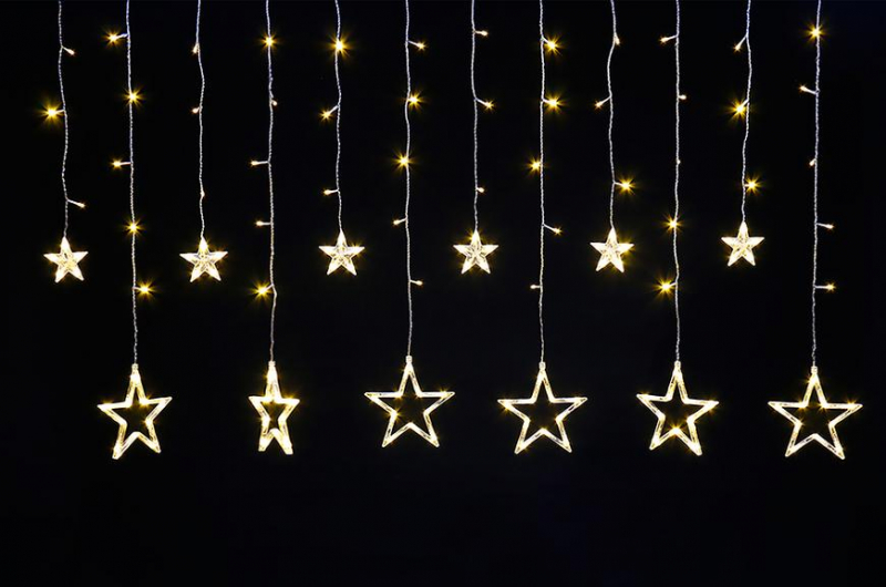 Reťaz MagicHome Vianoce Curtain, 138x LED teplá biela, s hviezdami, 230V, 50 Hz, 8 funkcií, osvetlenie, L-2,2x0,6/0,9 m