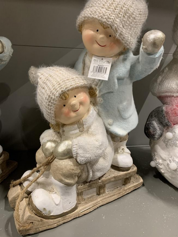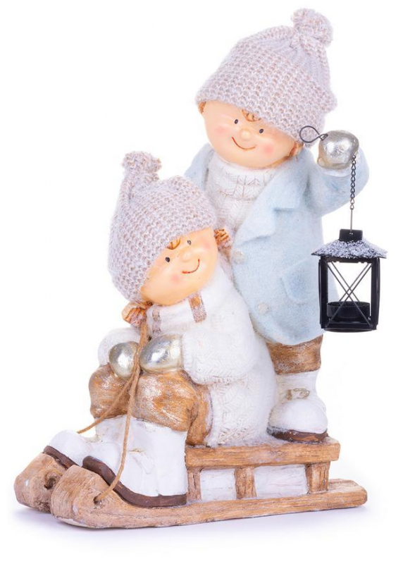 2. TRIEDA Postavička MagicHome Vianoce, Chlapček s dievčatkom na saniach, keramika, 34x24x46,5 cm