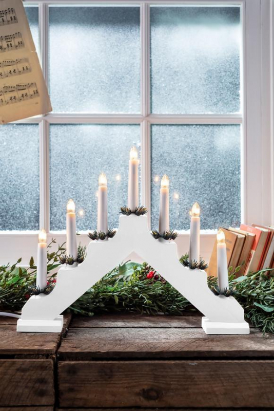 2. TRIEDA Svietnik MagicHome Vianoce, 7 LED teplá biela, biely, 2xAA, interiér, 39x31 cm