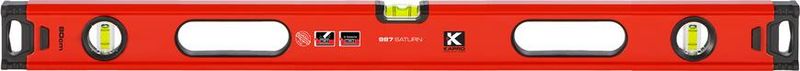 Vodováha KAPRO® 987X-41 Saturn je praktickým pomocníkom všetkých stavbárov a murárov, či domácich kutilov. Vodováha je vybavená tromi akrylovými libelami odolnými voči nárazom, veľkou výhodou pri tomto modeli je zväčšená horizontálna libela. Funkcia uchytenia na stenu. Na jej koncoch sa nachádzajú gumové hrany, ktoré vynikajúco tlmia nárazy. Presnosť vodováhy dosahuje 0,5 mm/m. Jej povrch je jemne frézovaný. Vodováha sa vyznačuje výbornou priľnavosťou na stenu. Dĺžka tejto vodováhy dosahuje 80 cm.