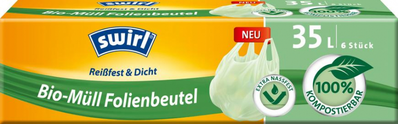Vrecia Swirl BIO, kompostovateľné, na odpad, s ušami, 35 lit., bal. 6 ks