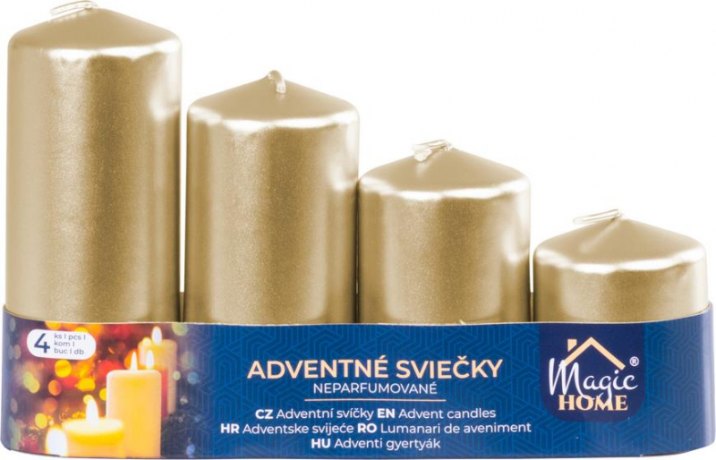 2.TRIEDA Sviečka MagicHome, vianočná, adventná, zlatá, 48 mm 60/80/100/120 mm, bal. 4 ks
