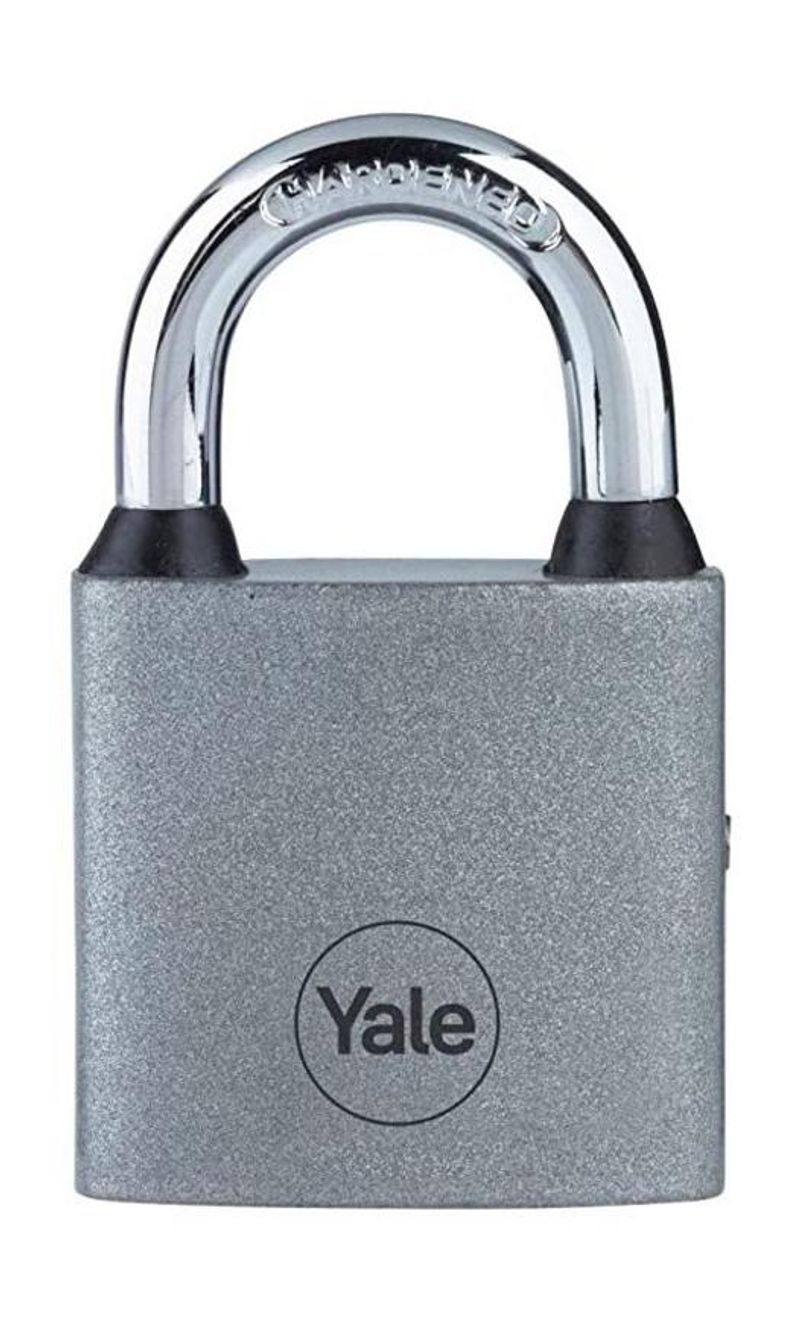 Visiaci zámok Yale so šírkou 38 mm so štandardnou úrovňou zabezpečenia. Železná konštrukcia disponuje tvrdeným strmeňom, ktorý zabraňuje prerezaniu. Odolný zámok testovaný na 10 000 cyklov (otvorenie a zatvorenie) pre optimálny výkon. Balenie obsahuje 3 ks kľúčov.