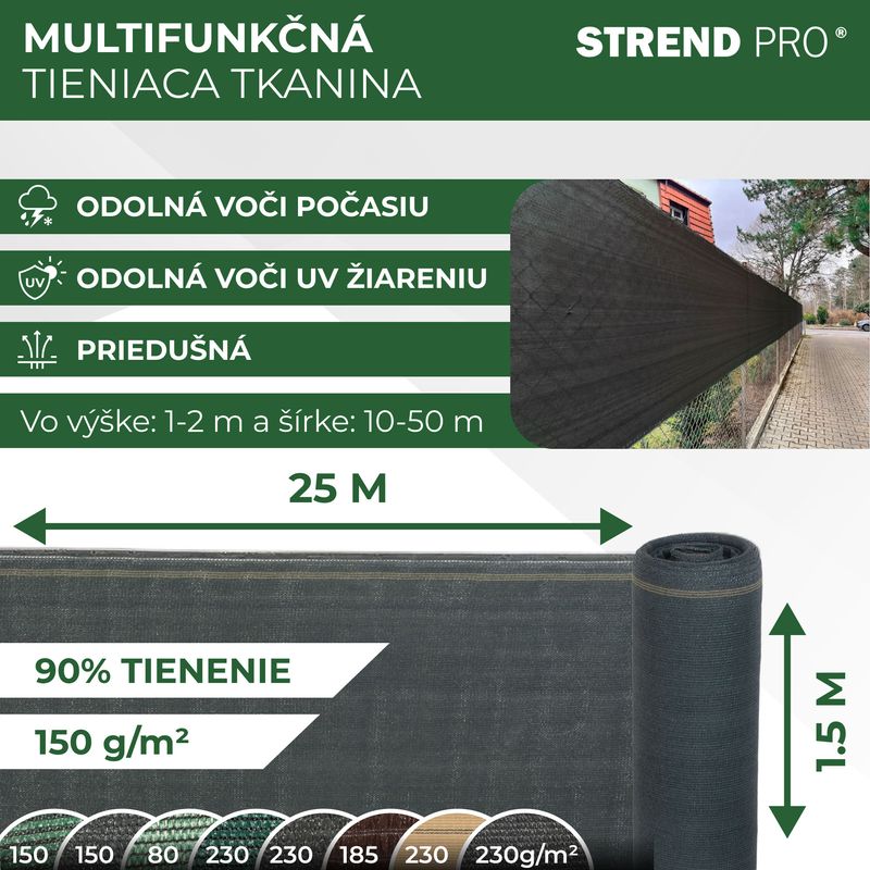 Tieniaca tkaninaPopular Netje ideálnym riešením na ochranu súkromia a zníženie veternosti v exteriéri. Vyrobená z kvalitnéhoHDPE materiálus hustotou150 g/m², poskytuje90 % zatieneniea vysokú odolnosť voči poveternostným vplyvom. Tkanina jeodolná voči UV žiareniu, čím si zachováva svoje vlastnosti a predlžuje svoju životnosť. Vhodná na použitie naploty, balkóny, terasy, pergoly alebo záhradné altánky. Jednoduchá inštalácia vďaka upevňovacím okám na okrajoch umožňuje rýchle a bezpečné prichytenie k rôznym konštrukciám.