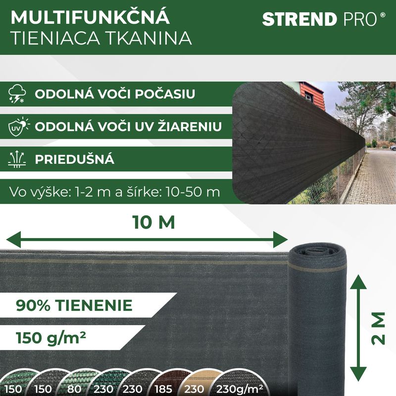 Tieniaca tkaninaPopular Netje ideálnym riešením na ochranu súkromia a zníženie veternosti v exteriéri. Vyrobená z kvalitnéhoHDPE materiálus hustotou150 g/m², poskytuje90 % zatieneniea vysokú odolnosť voči poveternostným vplyvom. Tkanina jeodolná voči UV žiareniu, čím si zachováva svoje vlastnosti a predlžuje svoju životnosť. Vhodná na použitie naploty, balkóny, terasy, pergoly alebo záhradné altánky. Jednoduchá inštalácia vďaka upevňovacím okám na okrajoch umožňuje rýchle a bezpečné prichytenie k rôznym konštrukciám.