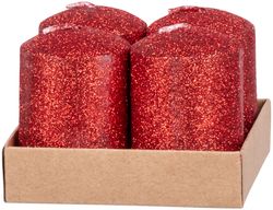 Sviečka MagicHome Vianoce, 4,8x8 cm, valcová, bal. 4 ks, červená, s glitrami, adventná