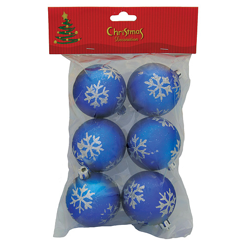 Gule MagicHome Vianoce, 6 ks, modré so striebornými vločkami, 6 cm