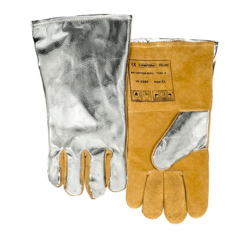 COMFOflex ® vložka, zváracie rukavice s hliníkovým chrbtom slúžiacim na odraz sálavého tepla, s medzivrstvou z jelenia štiepenky a vyrobená z bočnej hovädzej štiepenky.