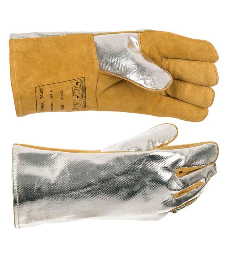 COMFOflex ® vložka, zváracie rukavice s hliníkovým chrbtom slúžiacim na odraz sálavého tepla, s medzivrstvou z jelenia štiepenky a vyrobená z bočnej hovädzej štiepenky.