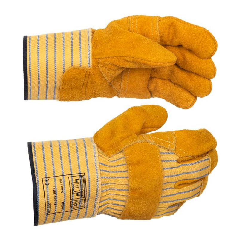 Univerzálne pracovné rukavice z hovädzej štiepenky z kolena na dlani a prstoch, 7,5 cm dlhá bezpečnostná manžeta.