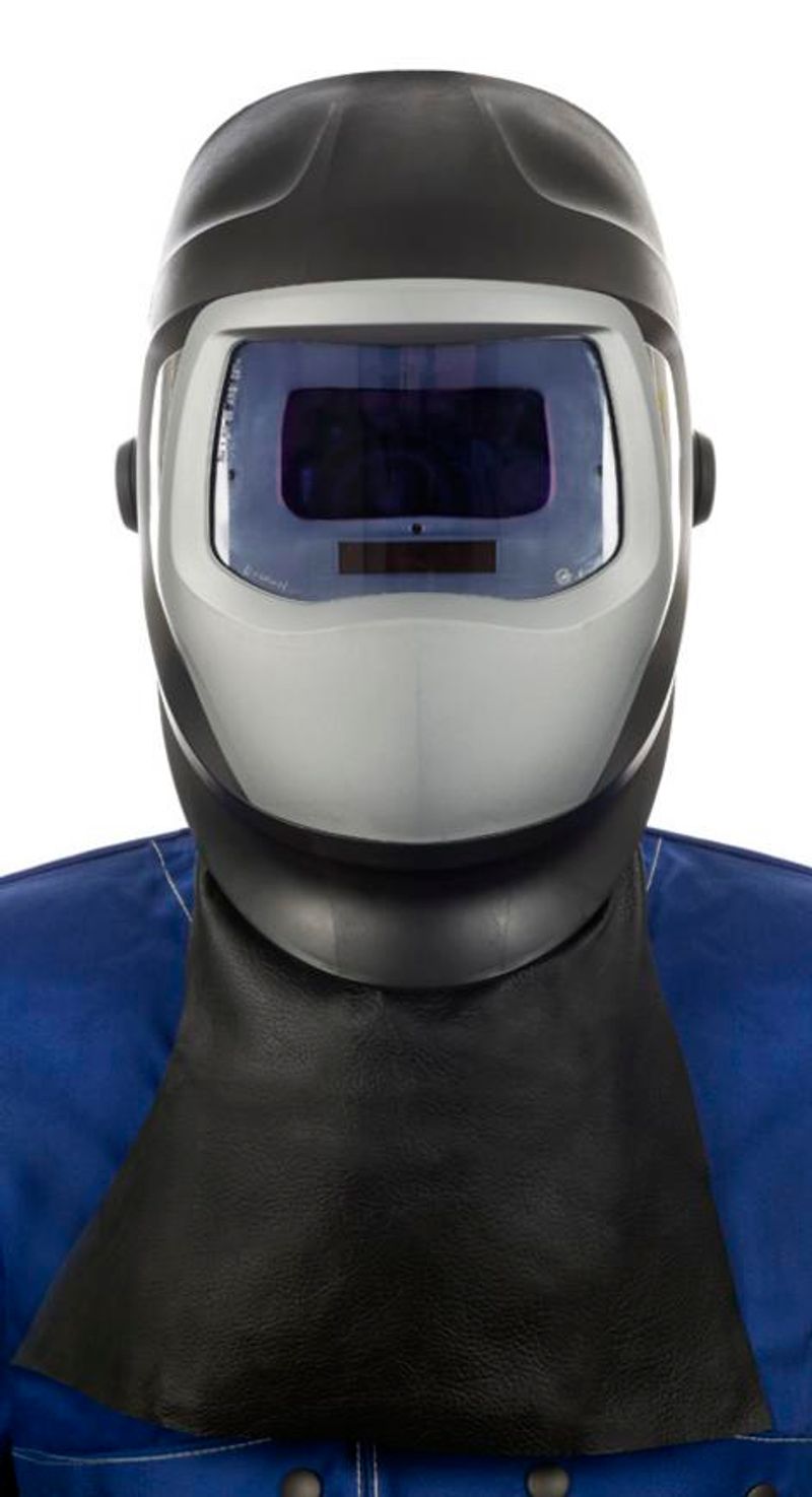 Kožená čiapka pre zváračov z rubovej čiernej hladkej hovädziny vrátane ochrany šije a krku.
