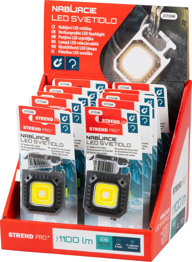 Svietidlo Strend Pro Worklight ZW120402, prívesok, LED 1100 lm, magnet, s klipsou, USB nabíjanie, Sellbox 10 ks