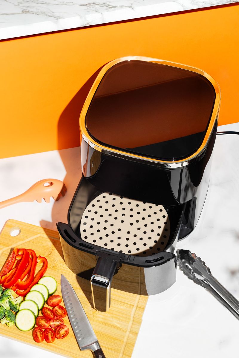 - Tvar a rozmery: Okrúhly tvar s rozmermi 19,5x5x0,1 cm je navrhnutý tak, aby perfektne pasoval do väčšiny štandardných fritéz.