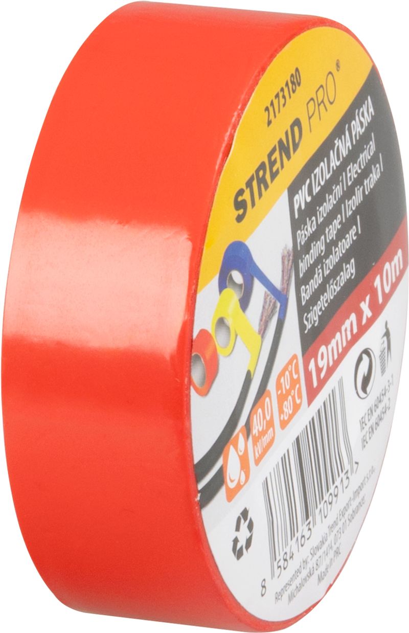 Páska Strend Pro, 19 mm, L-10 m, max. 80°C, 40,0 kV/mm, červená, izolačná, lepiaca, PVC, bal. 10 ks