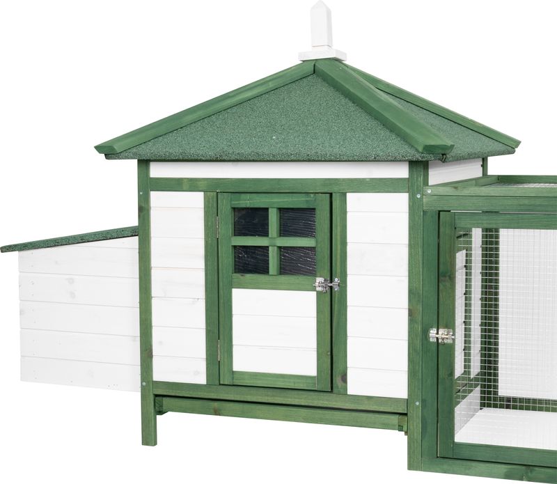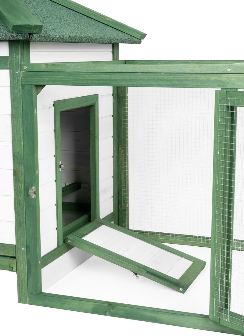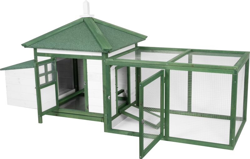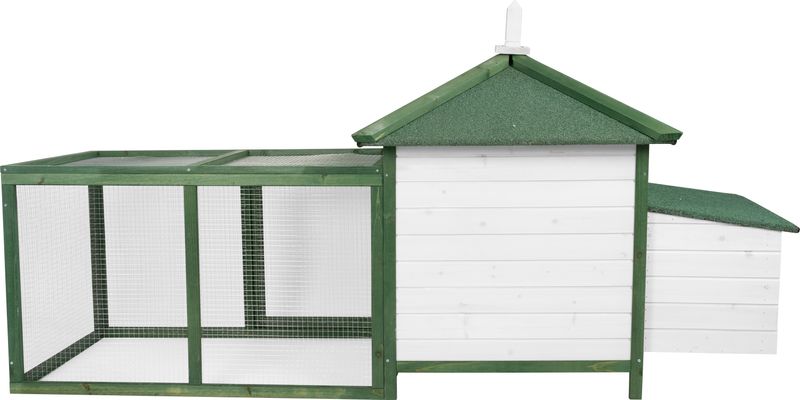 Kurín Strend Pro je praktické a priestranné riešenie pre chov sliepok a inej drobnej hydiny. Kombinuje uzavretú časť na znášanie a oddych so samostatným drôteným výbehom, ktorý zabezpečuje dostatok pohybu a čerstvého vzduchu.