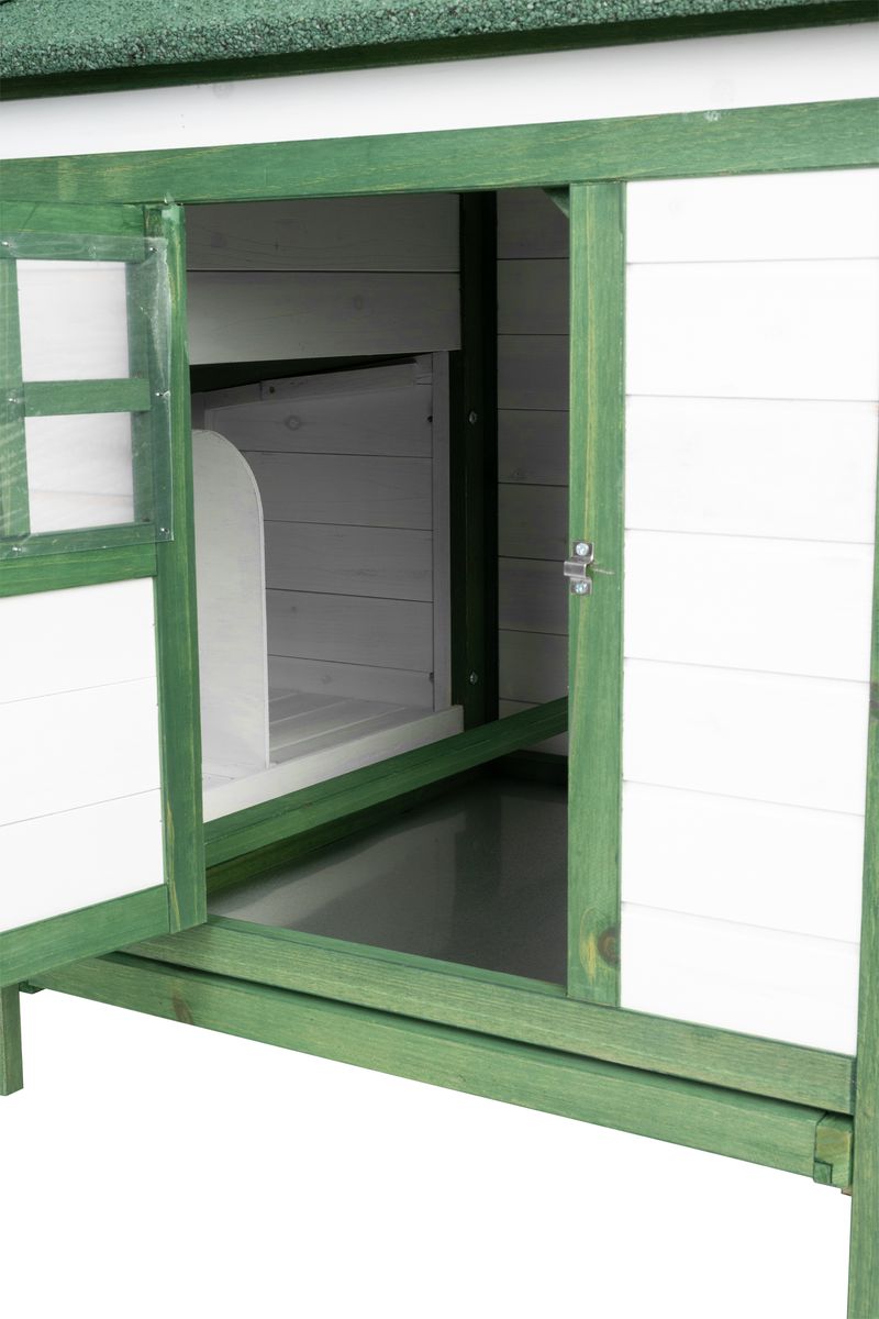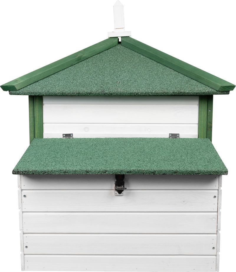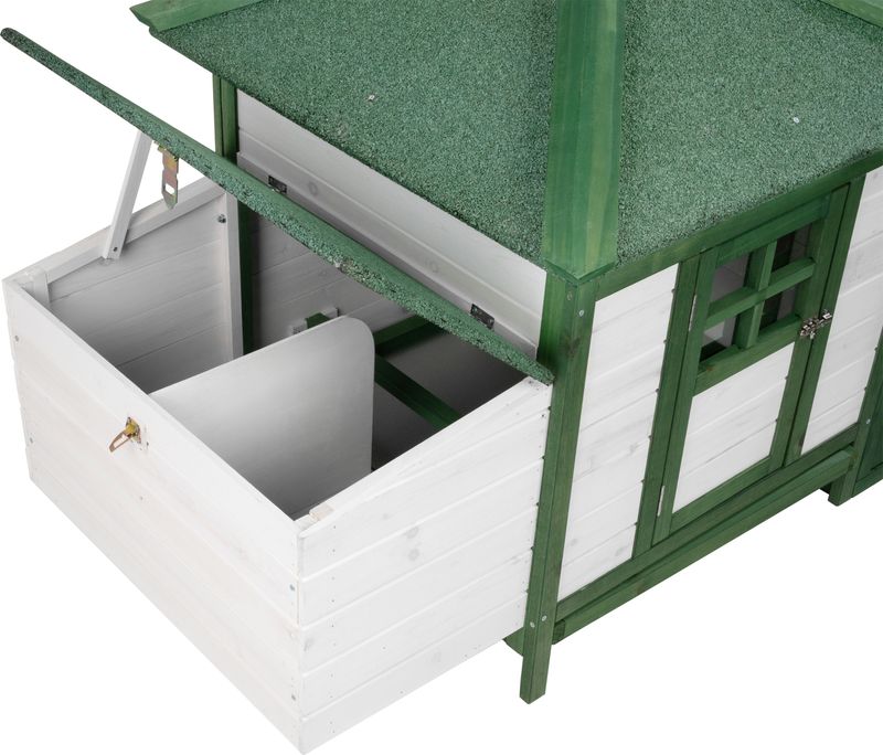 - Otvárateľná strecha: jednoduchý prístup do vnútra pre čistenie a zber vajec.