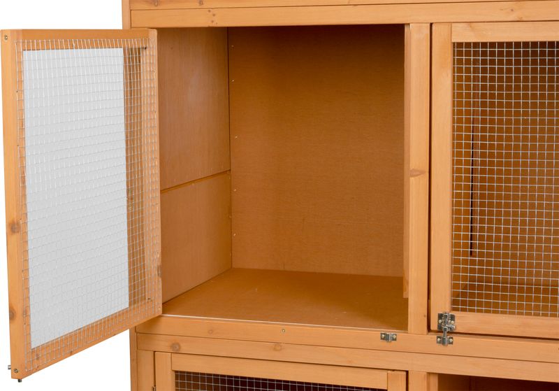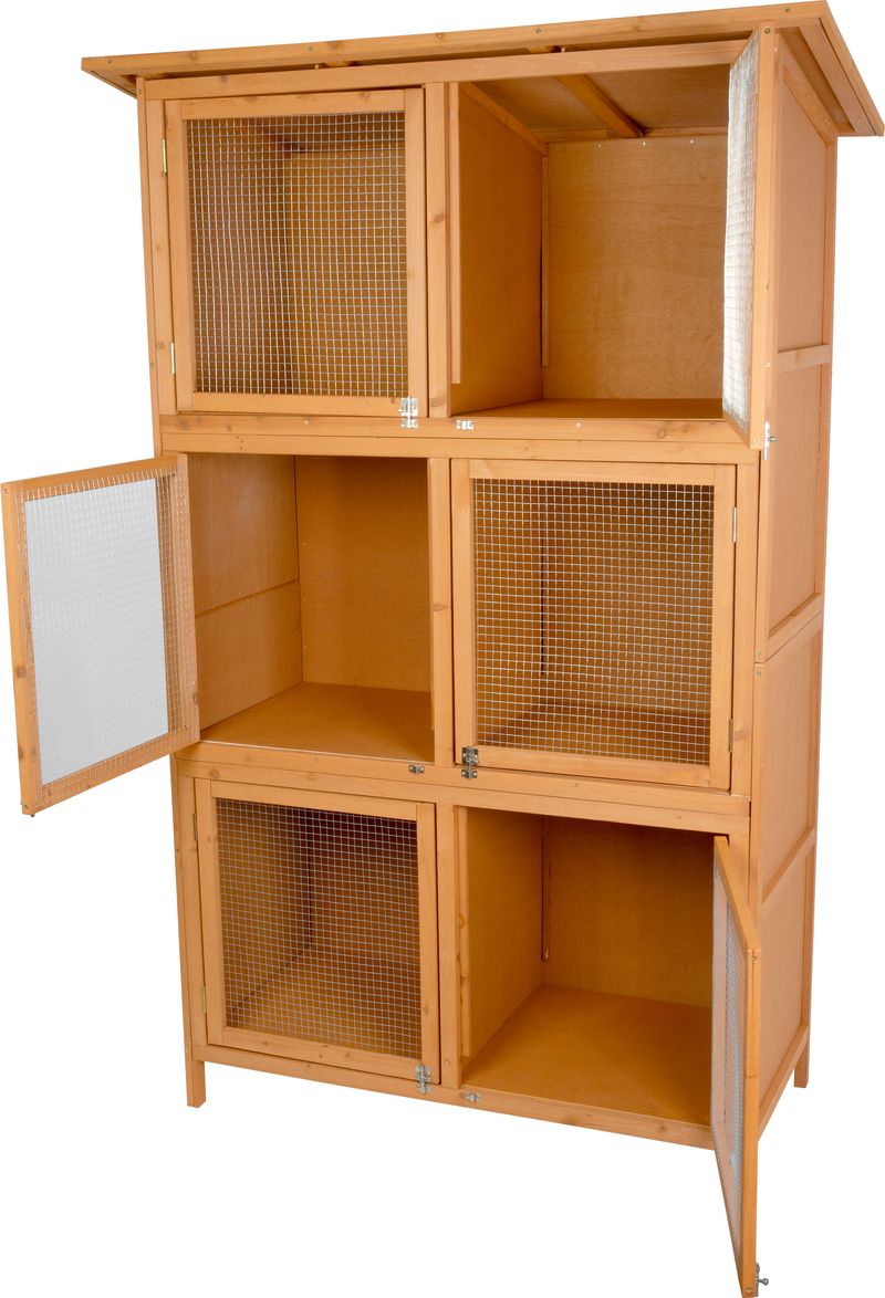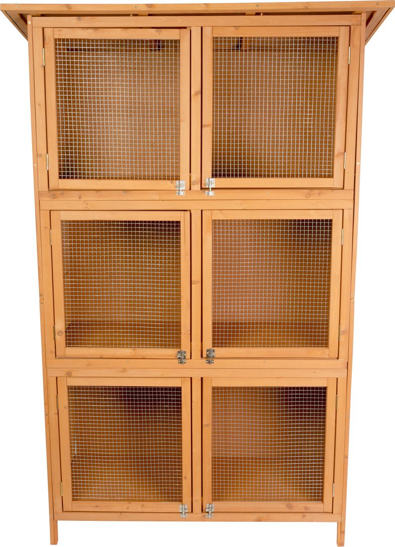 Králikáreň Strend Pro je praktická viacpodlažná drevená klietka určená na chov králikov a iných drobných zvierat. Vďaka svojej výške a členeniu do viacerých samostatných boxov poskytuje dostatok priestoru a prehľadnú organizáciu chovu.