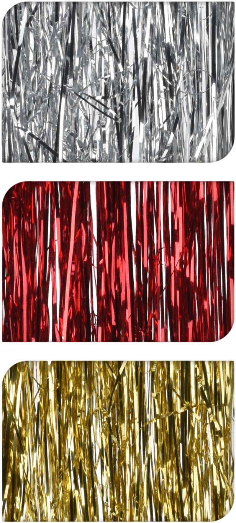 Dodajte svojmu vianočnému stromčeku alebo interiéru pravý sviatočný lesk s dekoratívnou lametou. Trblietavé pásiky v klasických farbách – zlatej, striebornej a červenej – rozžiaria každý kút vášho domova a vytvoria dokonalú vianočnú atmosféru.